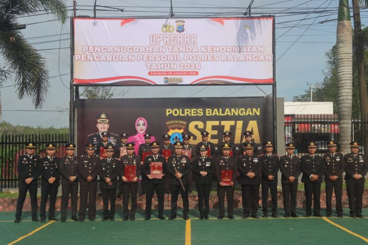 Sebanyak 14 personel Kepolisian Resor (Polres) Balangan, Polda Kalimantan Selatan, menerima penganugerahan Tanda Kehormatan Satyalancana Pengabdian atas dedikasi dan loyalitas dalam menjalankan tugas kepolisian. Upacara penganugerahan digelar di halaman Mapolres Balangan, Kamis (29/1/2026) pagi.