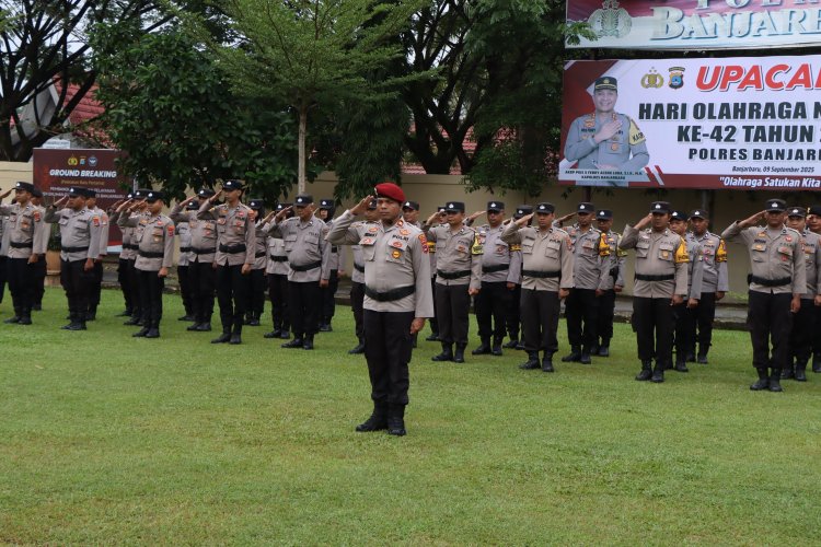 Polres Banjarbaru menggelar upacara peringatan Hari Olahraga Nasional (Haornas) ke-42 tahun 2025 di Halaman Apel Mapolres Banjarbaru, Selasa (9/9/2025) pagi.