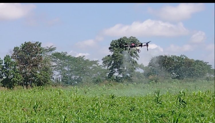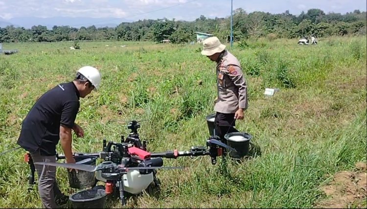 Kapolsek Banjarbaru Utara Dampingi Kelompok Tani, Semprot Jagung Gunakan Drone Lebih Efisien