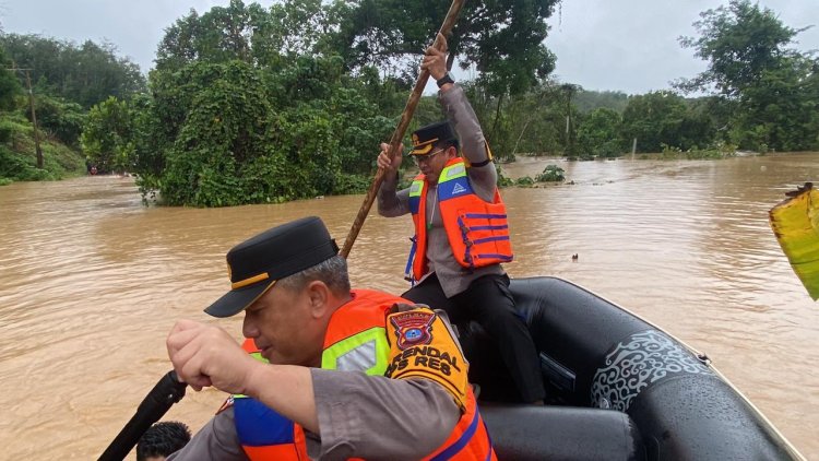 Balangan, Targetoperasi.id - Polres Balangan Polda Kalsel menerjunkan lebih dari 50 personel gabungan untuk membantu proses evakuasi ratusan warga. Kapolres Balangan AKBP Yulianor Abdi turun langsung ke lokasi banjir di Desa Sungsum, Kecamatan Tebing Tinggi, untuk memimpin upaya penyelamatan dan pendataan korban terdampak.