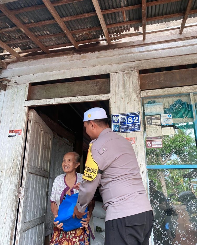 Beruntung Baru, Targetoperasi.id - Kegiatan tersebut dilaksanakan pada Jumat (17/4/2026) sore di Desa Kampung Baru, Kecamatan Beruntung Baru, Kabupaten Banjar. Bhabinkamtibmas setempat, AIPDA Ardianto Aditia Wibisono, turun langsung menyambangi rumah warga sekaligus menyerahkan bantuan kepada masyarakat yang membutuhkan.
