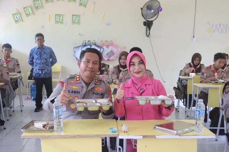 Menariknya, Kapolres dan Ketua Bhayangkari turut menikmati menu MBG bersama para siswa di ruang kelas, menciptakan suasana hangat dan akrab di tengah kegiatan tersebut.