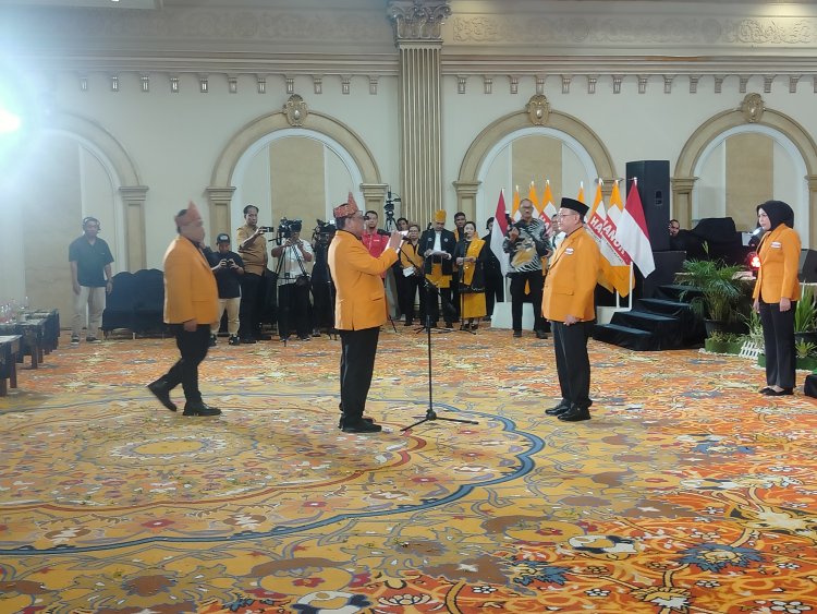 Ketua Umum Partai Hati Nurani Rakyat (Hanura) Dr. Oesman Sapta meresmikan dan melantik kepengurusan baru Dewan Pimpinan Daerah (DPD) Partai Hanura Provinsi Kalimantan Selatan di Grand Qin Hotel Banjarbaru, Senin (3/11/2025).