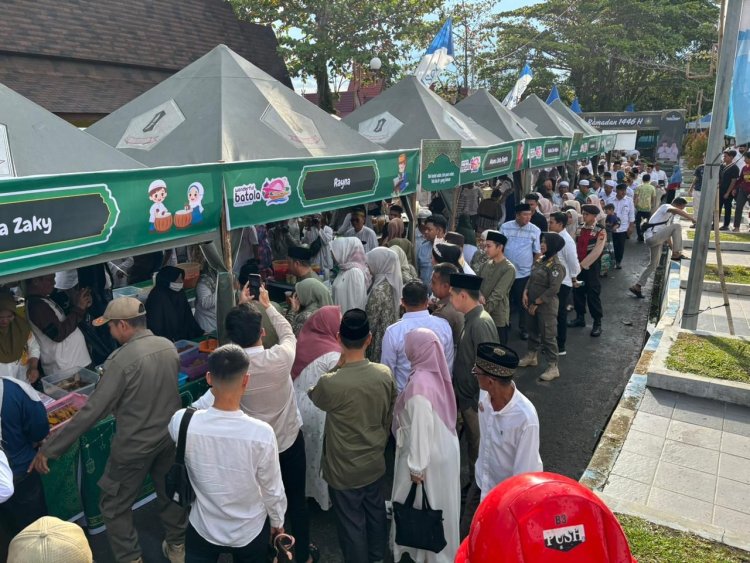 Batola, Targetoperasi.id - Pembukaan pasar Ramadhan Bupati Batola H. Bahrul Ilmi, S.H., M.H didampingi Wakil Bupati Herman Susilo, Ketua DPRD Kab. Batola, Forkopimda Kab. Batola, Kapolres Batola diwakili Waka Polres Hendra Sumala, Sartio, S.E. S.I.K. M.H, Ketua TP PKK Kab. Batola, para Skpd lingkup Kab Batola, Ketua MUI Kab. Batola, Ketua Baznas, pimpinan Bank Kalsel dan BRI.