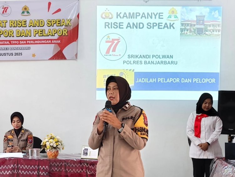 Dengan semangat Rise and Speak, Polwan Polres Banjarbaru ingin menumbuhkan generasi yang peduli, tangguh, serta siap melawan segala bentuk kekerasan dan tindak kejahatan terhadap perempuan dan anak.(Intan).