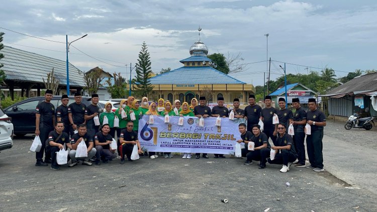 Karang intan, Targetoperasi.id - Menyambut bulan suci ramadan 1446 Hijriyah, Lembaga Pemasyarakatan (Lapas) Narkotika Kelas llA Karang intan, bersama Paguyuban Ibu Pemasyarakatan (PIPAS) cabang Lapas Narkotika Karang Intan, dalam program Jumat Berkah dengan membagikan takjil kepada masyarakat pengguna jalan, di wilayah Lapas Karang Intan, Jumat 28/03/2025.